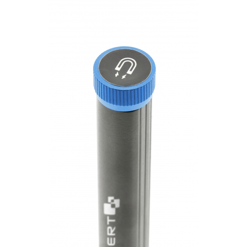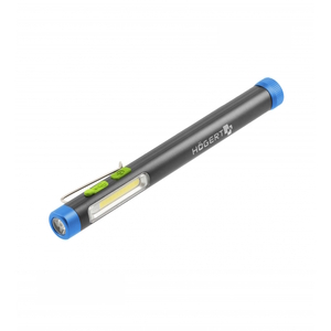 Компактний ліхтарик-ручка – це багатофункціональний освітлювальний прилад, який ви завжди можете носити з собою. Його невеликий розмір і вага дозволяють брати його в кишеню або зберігати в невеликому відділенні.Він оснащений потужними та енергозберігаючими світлодіодами з різними характеристиками освітлення. SMD-світлодіоди світять розсіяно, не засліплюючи. COB-світлодіоди мають більш сфокусоване світло, чітко випромінюване вузьким променем з однієї точки.Максимальна довжина світлового променя становить 50 м.Він має 4 режими освітлення: 300 лм для COB + SMD світла та 300 лм або 180 лм для COB та УФ-світла, що полегшує виявлення рідин.Крім того, він має функцію плавного регулювання інтенсивності освітлення. Утримування кнопки приглушує світло та вимикається, коли кнопка відпускається.Гачок у формі ручки забезпечує легке транспортування.Магніт, вбудований в основу, дозволяє прикріпити ліхтар до металевого елемента та звільнити руки для роботи.Ліхтар живиться від ефективного акумулятора, що забезпечує безперервну роботу до 3 годин.Корпус з алюмінію гарантує стійкість до пошкоджень та тривалий термін служби.