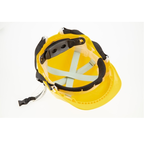 Захисна каска з ABS пластику має вентиляційні отвори, отвори для кріплення навушників. Крім того, бічні кріплення служать для кріплення додаткових засобів захисту обличчя, очей та слуху. Корпус зберігає удароміцність при низьких температурах, має високу твердість і стійкість. до подряпин. 6-точкові шлейки виготовлені з високоміцної поліестерової тасьми і не натерають, як пластикові шлейки. Регулювання на задній частині шолома, виготовлене з нейлону, забезпечує ідеальну посадку для голови будь-якого розміру. Оснащений 4-точковим ременем підборіддя. Відмінно підходить для умов, що потребують ефективного захисту, відмінної вентиляції та максимального поля зору. Виготовлена відповідно до EN 397 та призначена для професійного використання.
