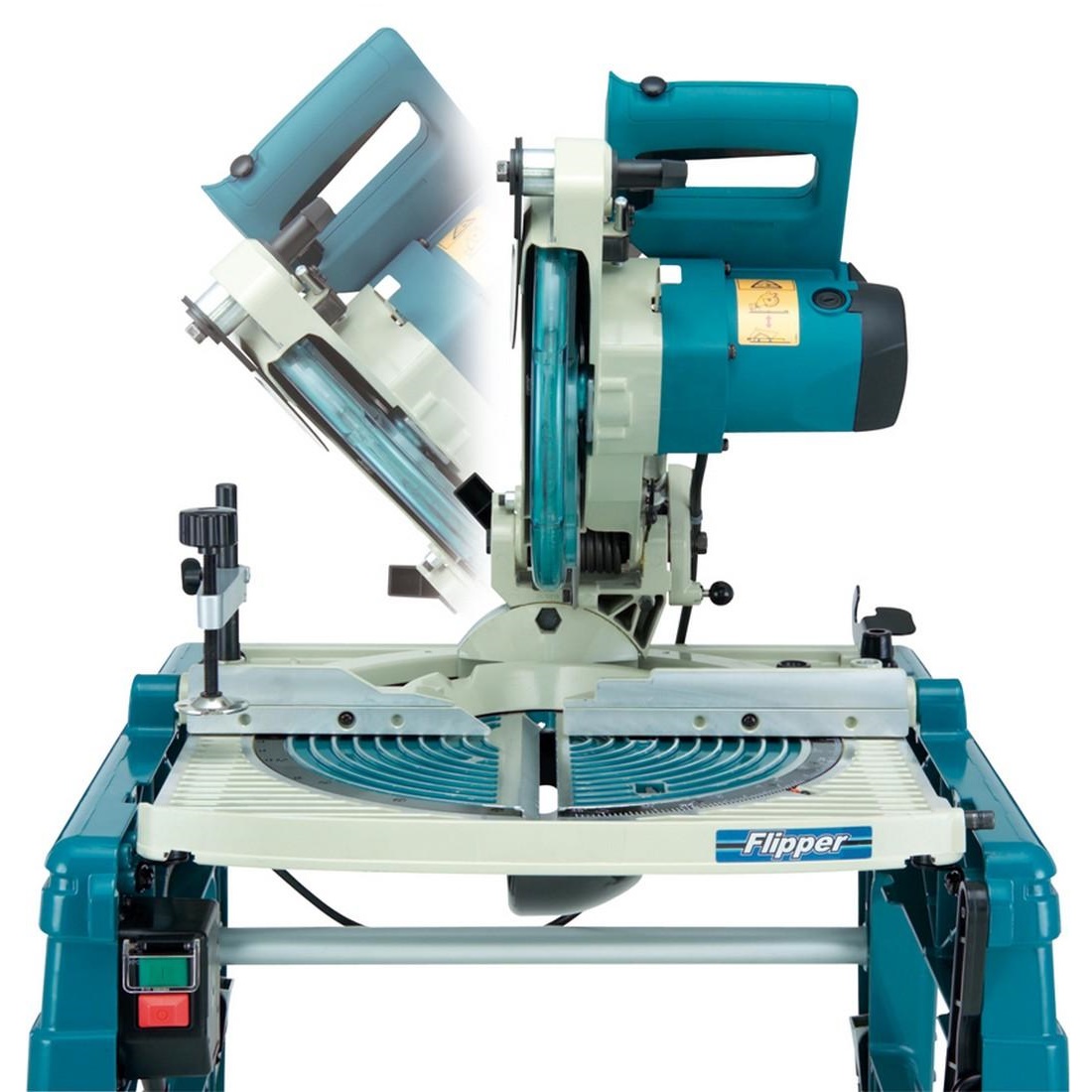 Пила торцювальна Makita LF1000 - це комбінована торцювальна поворотна пилка з легким мотором і столом. Легкий мотор забезпечує швидке перетворення з торцювальної пилки на настільний розпилювальний верстат і назад. Компактний стіл із алюмінію зі складними ніжками забезпечують легке транспортування.