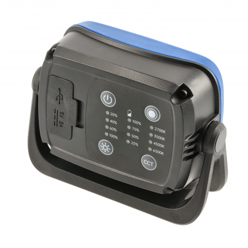 Портативний робочий світильник, що відрізняється чудовою якістю світла, високою стійкістю до пошкоджень та довговічністю.Підходить для роботи в найскладніших умовах - на будівництві, оздоблювальних роботах, ремонтних майстернях і на відкритому повітрі.Якісні світлодіоди світять із різною інтенсивністю у 4 вибраних кольорах + червоний. Це дозволяє створювати 18 унікальних режимів освітлення.Максимальна відстань освітлення об'єктів складає 60 метрів.Ліхтар живиться від потужного акумулятора, що забезпечує безперервну роботу до 17 години.Корпус із алюмінію із захистом від ударів гумою та АБС-пластиком, що має високий клас захисту IK07, гарантує повну стійкість до ударів силою 2 Дж, що еквівалентно падінню предмета масою 500 г з висоти 40 см.Крім того, корпус захищений від бризок води за стандартом IPX4, що дає змогу безпечно використовувати його під невеликим дощем. Працює в широкому діапазоні температур: на вулиці взимку та в спеку від -20°C до +40°C.Ручка з нахилом на 360 ° дозволяє спрямовувати світло у будь-якому напрямку.Потужний магніт та складний гак для підвішування дозволяють закріпити прожектор у будь-якому місці, звільнивши руки для роботи.Гніздо з різьбленням 1/4″ дозволяє встановити прожектор на штатив.При необхідності прожектор може працювати як зовнішній акумулятор і живити інші пристрої через порти Type A та Type C.