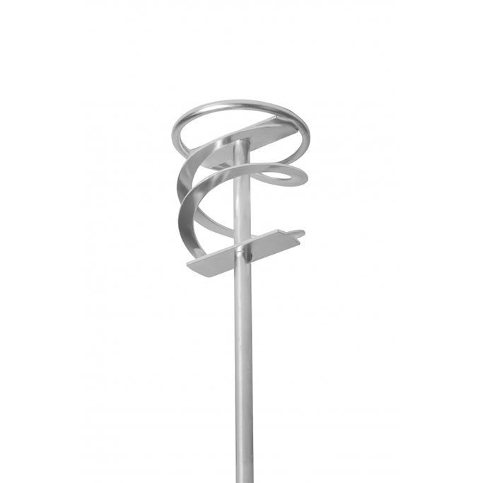 Інструмент для змішування клеїв, фарб, штукатурки та цементного розчину за допомогою дриля/викрутки.Круглий профіль та гладка поверхня змішувача запобігають аерації суміші.Виготовлений з міцного та довговічного матеріалу, змішувач оцинкований для тривалого використання.Шестигранний змішувальний стрижень запобігає обертанню змішувача в патроні дриля.