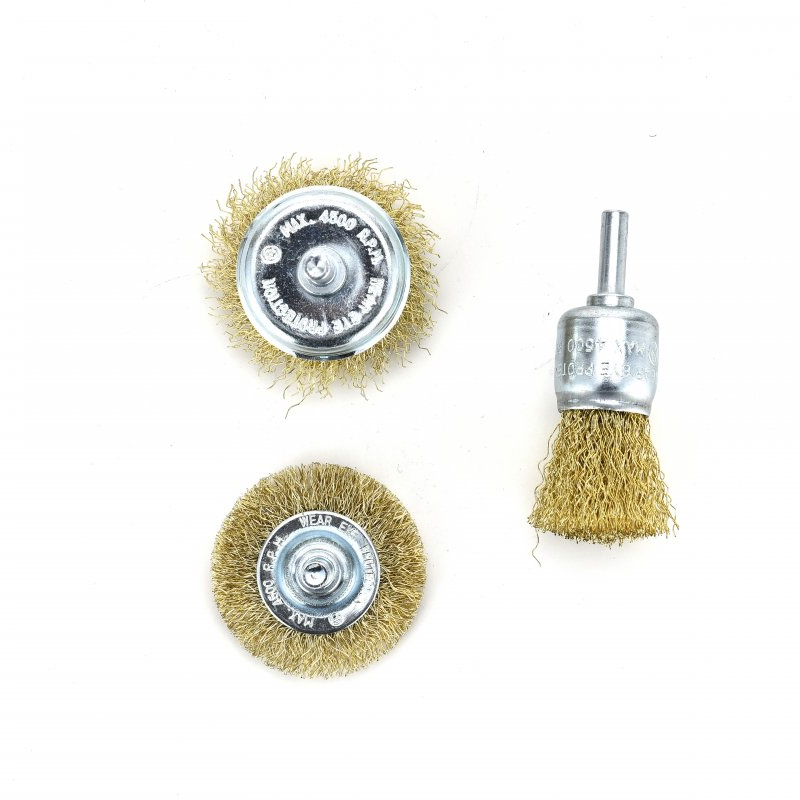 Набір із 3 високоякісних дротяних щіток з хвостовиком. Вони використовуються для очищення зварних швів, сильної корозії, фарби та іншого.