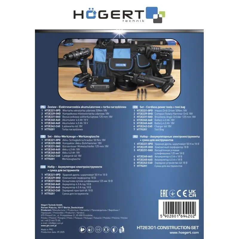 Набір електроінструментів 18V КОНСТРУКЦІЯ HOEGERT 6 (HT2E301-CONSTRUCTION-SET)