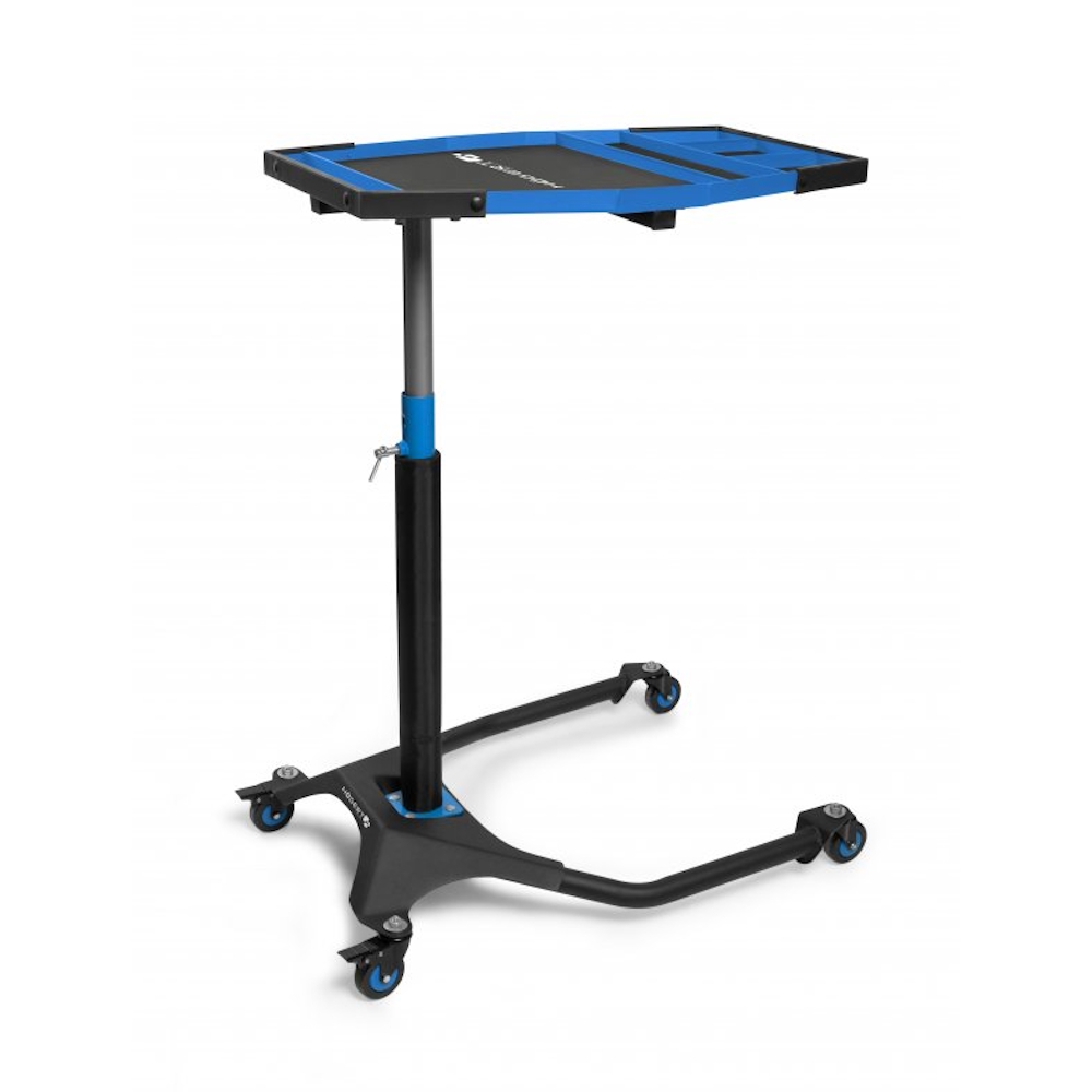 Мобільний верстак, ідеальний для обслуговування автомобільних двигунів. Стільницю можна розмістити безпосередньо над мотором завдяки основі у формі літери Н. Це дозволяє підсунути стіл навіть при встановленому колесі. Стіл є функціональним інструментом 2-в-1: робоча поверхня для обслуговування та мобільний лоток для інструментів.