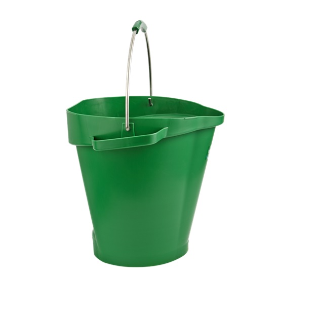20-літрове відро прекрасно підходить для змішування інгредієнтів і зберігання менших відер Vikan. Підходить для твердих і рідких інгредієнтів, досить велике і зручне для змішування, але компактне, що дає його легко піднімати і переносити. Відро має додаткову нижню ручку, закруглений ободок і носик, що економить сили співробітників, не дозволяє вмісту виливатися при піднятті і наливанні відра. Довговічні похилі поділу всередині відра допомагають точніше розраховувати обсяг.