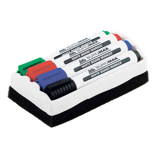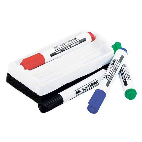 Комплект: 4 маркера для магн. досок (черн., син., зел., красн.), + губка для досок BUROMAX В наборе с губкой ((Im-off))