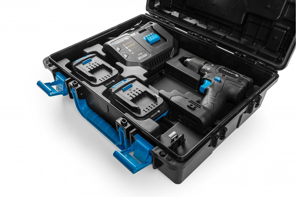 Аккумуляторный набор 18 ВДрель-шуруповерт 40 Нм + 2 аккумулятора + зарядное устройство 4 А + кейсАртикул: HT2E265-B22DD