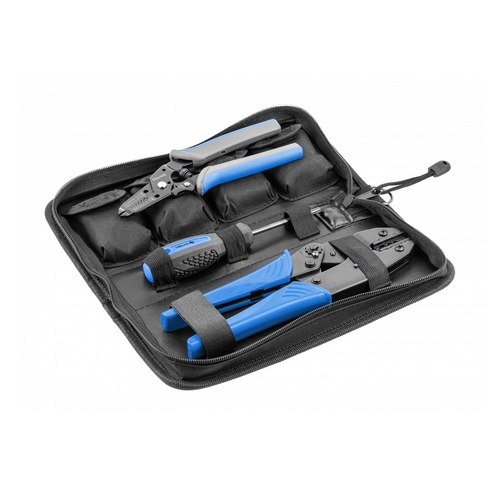 Универсальный набор клещей для обжима электрических соединительных зажимов с 5 сменными матрицами, позволяющими работать со многими распространенными типами электрических соединительных зажимов. Система быстрой смены матриц позволяет эффективно менять матрицы в зависимости от типа обжимаемого соединительного зажима. Кроме того, входящие в комплект щипцы для удаления изоляции с проводов вместе с резаком обеспечивают все необходимые инструменты для выполнения работы, упакованные в один удобный футляр. Используются при монтажных и сборочных работах в сфере электронных услуг, в автомеханике и телекоммуникациях.