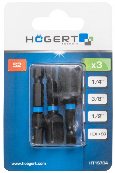 Набор ударных адаптеров для торцевых головок 1/4", 3 шт. HOEGERT 1/4″, 3/8″ и 1/2″ с патроном 1/4″HEX ((HT1S704))