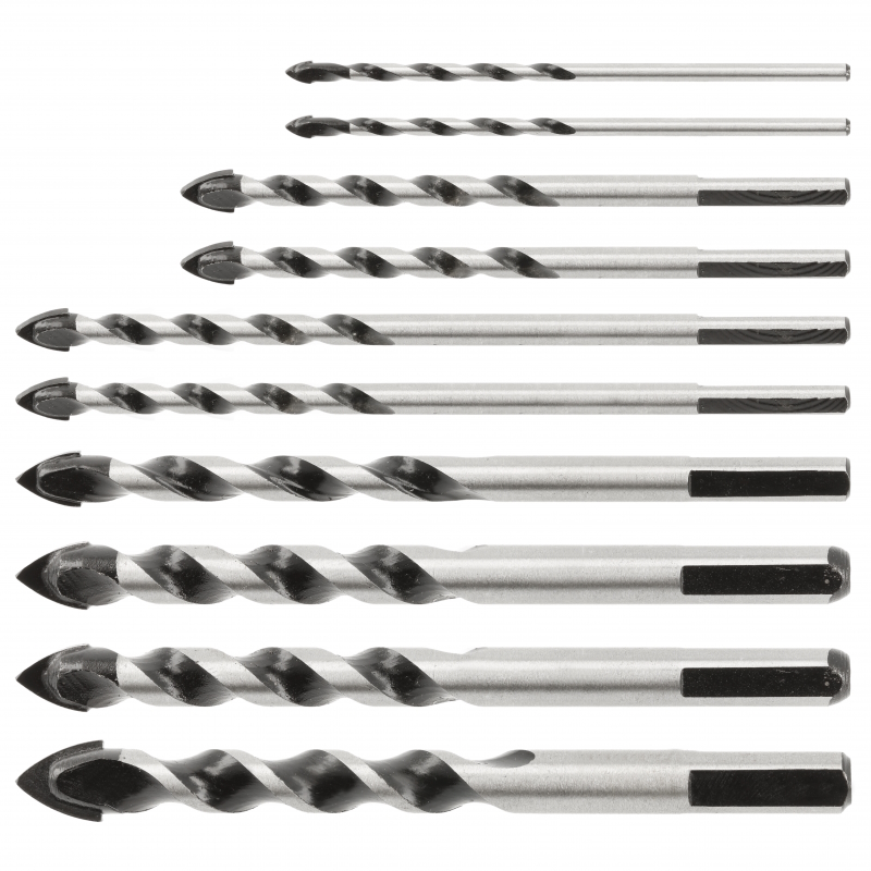 Набор универсальных сверл 10 шт. HOEGERT 3, 6, 8, 10, 12 ((HT6D192))