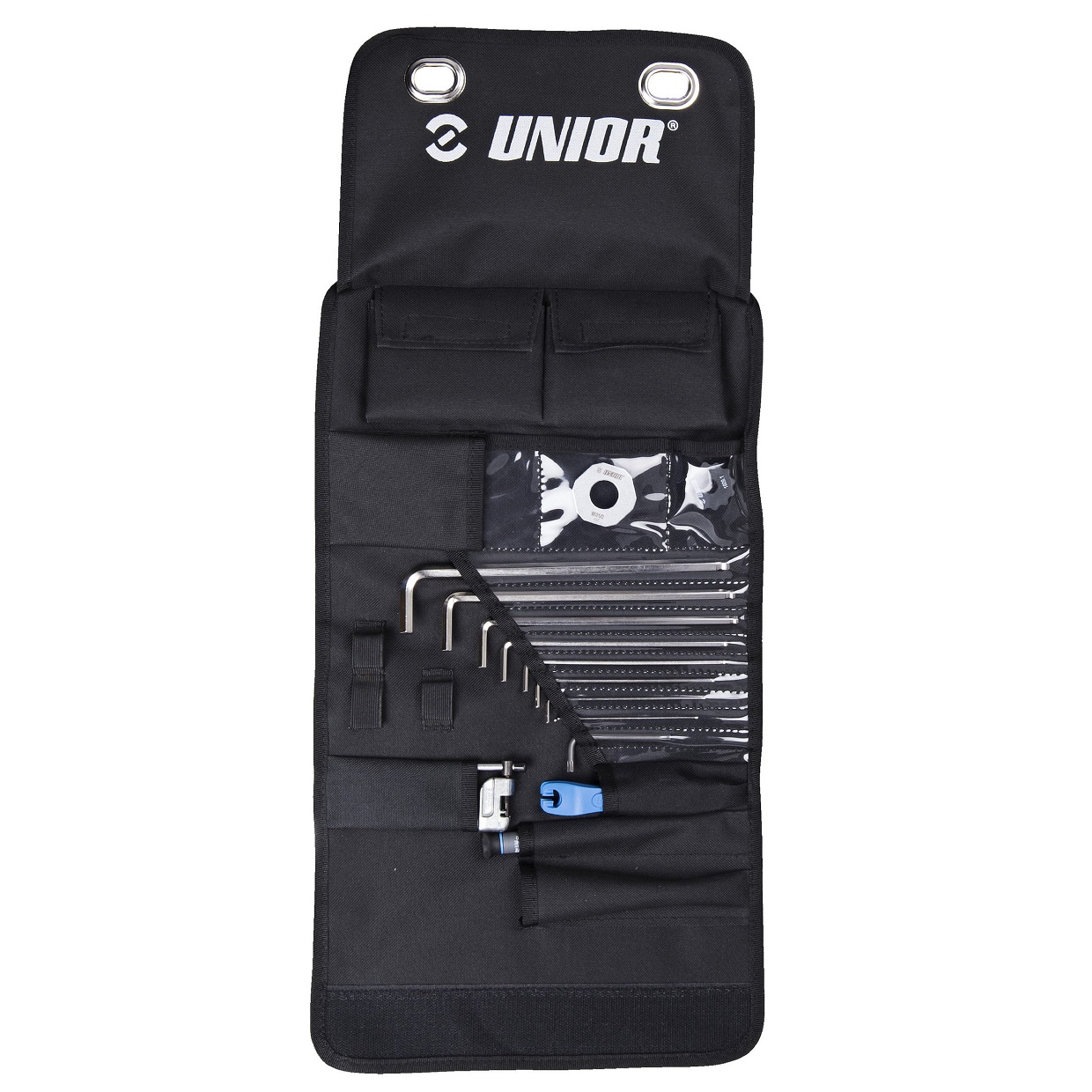 - Unior накидка-органайзер с инструментами - отличное решение для велосипедиста, который хочет быть готовым ко всему - "во все оружия", а также она будет полезна таким требовательным пользователям, как механикам по дисциплинам XC или CX. Накидка компактна, легка и ее просто хранить в рюкзаке или в машине. В этой версии она поставляется с большим выбором инструментов.