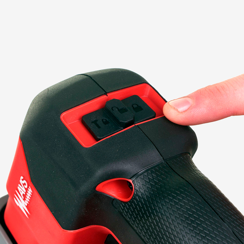 - Блокировка выключателя освобождает оператора от необходимости постоянно удерживать кнопку выключателя при использовании.