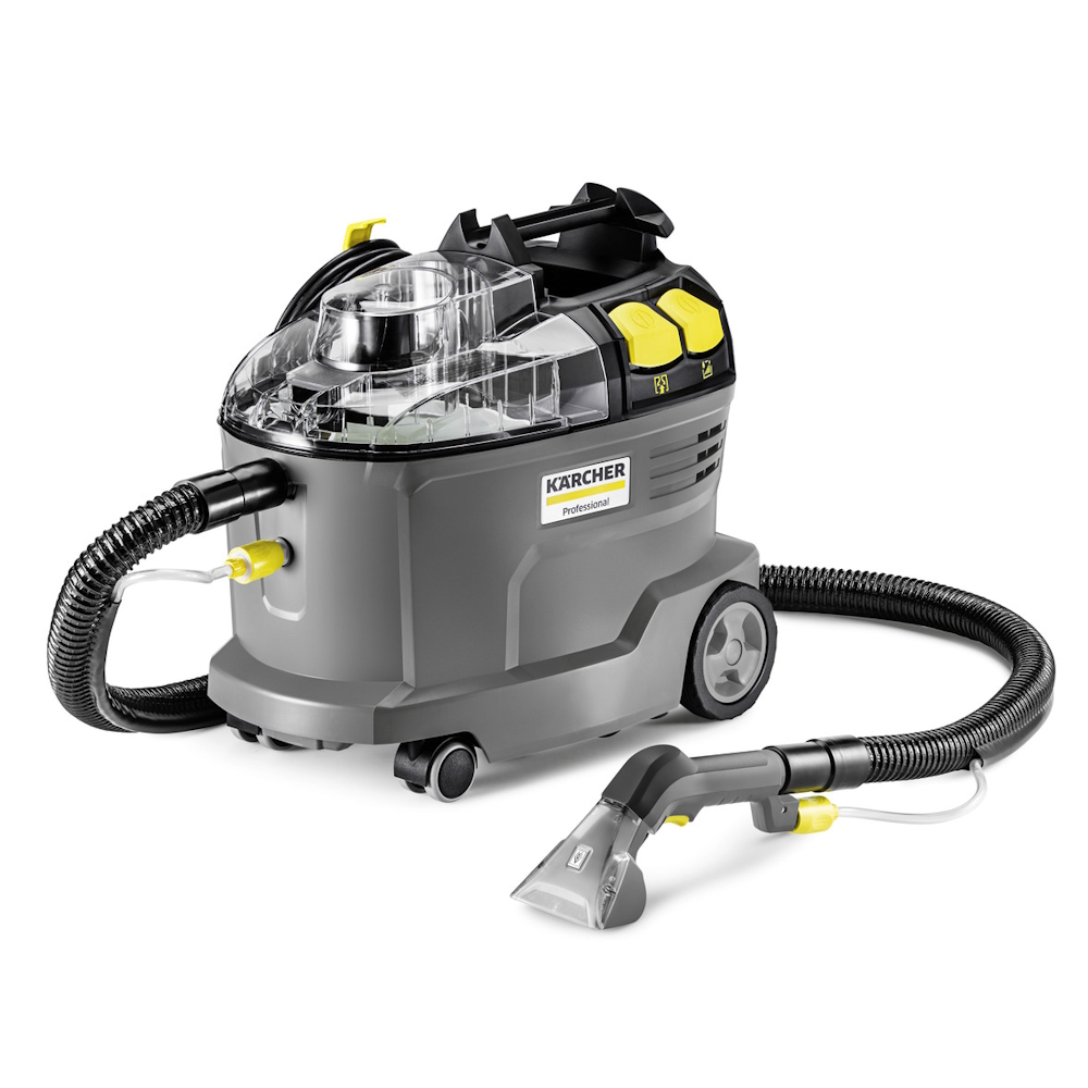 Надежный и долговечный моющий пылесос Puzzi 8/1, предназначенный для очистки мягкой мебели и удаления пятен с текстильных поверхностей, впечатляет превосходными результатами очистки и высокой экономичностью. Компактный аппарат распыляет раствор моющего средства, глубоко проникающий в структуру текстильного покрытия, после чего собирает его вместе с отделенной от волокон грязью. Высокая сила всасывания обеспечивает эффективное высыхание текстильных поверхностей, что позволяет быстро ввести их обратно в эксплуатацию. Благодаря этому аппарат прекрасно подходит для профессиональной уборки в гостиницах и ресторанах, а также для очистки салонов автомобилей. При этом, короткая насадка для мягкой мебели, которая входит в стандартную комплектацию, облегчает уборку в тесных пространственных условиях. Благодаря малому весу и эргономичной ручке для переноски моющий пылесос очень удобен в транспортировке. Удобству управления способствуют большие кнопки, нажимать на которые можно как рукой, так и ногой. Для лучшего контроля сбора загрязненного раствора крышка аппарата и всасывающая насадка изготовлены из прозрачного материала.