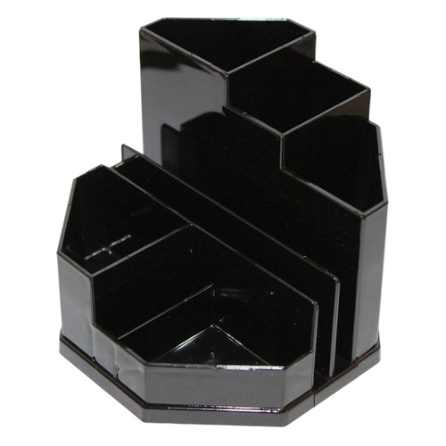 - 8 отделений: три отсека для пишущих принадлежностей, два отсека для бумажных заметок и визиток, три отсека для канцелярских мелочей: скрепок, кнопок, ластиков и др.
