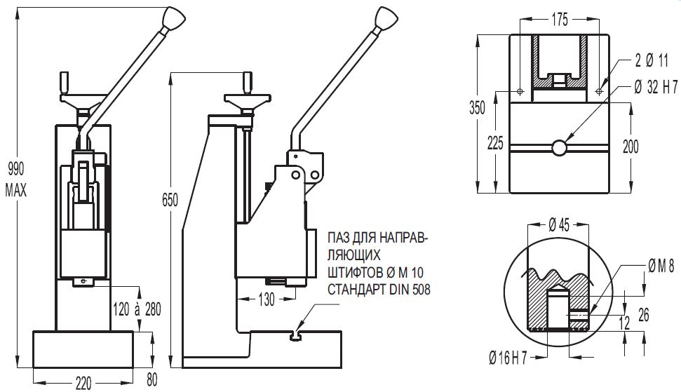 - Основание и головка пресса выполнены из чугуна FGL 250,