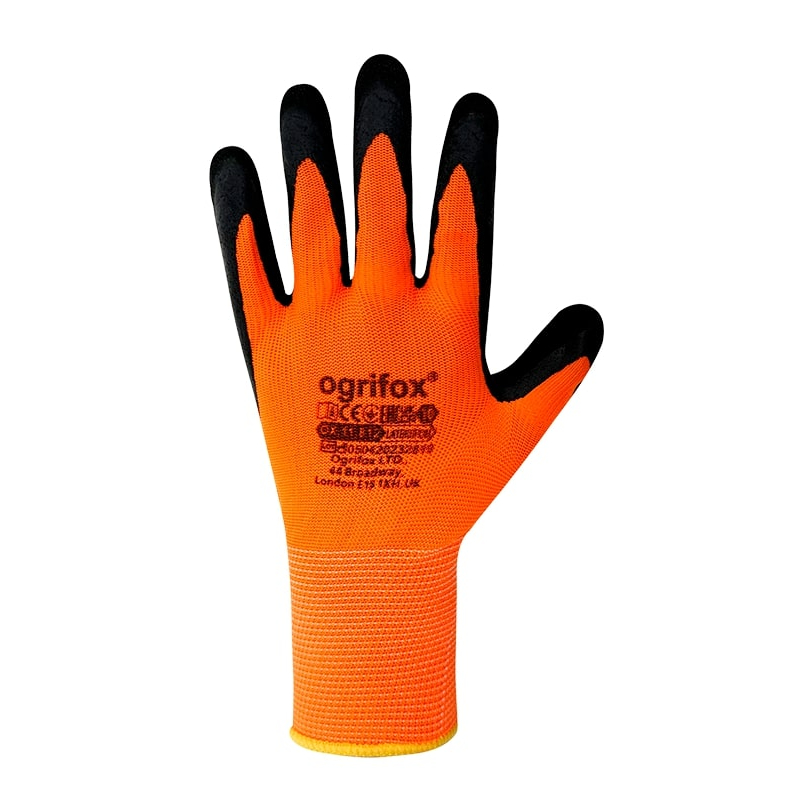 Перчатки синтетические оранжевые с черным неполным вспененным латексным покрытием, р.10 Ogrifox 10 ((69569))