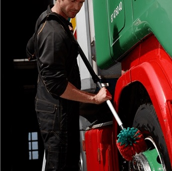 Эффективно очищайте одинарные и двойные колеса грузовиков и автобусов с большой щеткой для дисков с подачей воды.