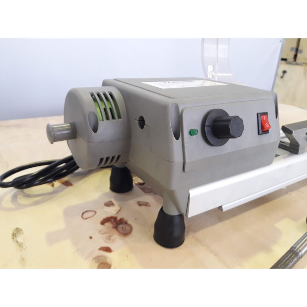 Станок предназначен для выполнения токарных работ по дереву малых заготовок.На станке есть плавная регулировка скорости двигателя, двигатель постоянного тока. Статор магнитный не боится заклинивания. Станок можно установить на сверлильный станок и получить токарно-фрезерный станок.