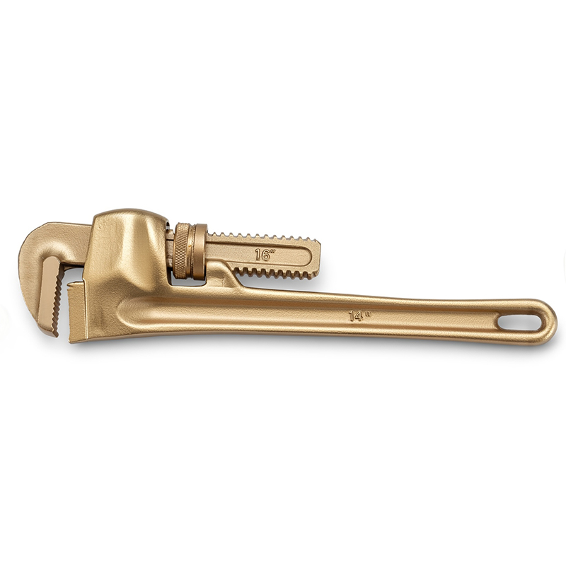 Профессиональный взрывобезопасный инструмент, разработанный для снижения физической нагрузки на персонал. Рабочая часть из алюминиевой бронзы предотвращает фрикционное искрение, обеспечивая надежную защиту объекта. Свойства: Высокая ударная вязкость и сопротивляемость износу. Соответствует международным стандартам искробезопасности. Применение: Ремонт и монтаж трубопроводов на НПЗ, объектах энергетики и в химической промышленности (Зоны 1, 2). Характеристики: Продуманная эргономика, легкий вес и долговечный механизм регулировки зева.