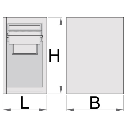 - В самом нижнем ящике имеется два разделенных контейнера для мусора объемом 50 литров; помещать мусор в первый контейнер можно через поворотную крышку на лицевой стороне ящика.