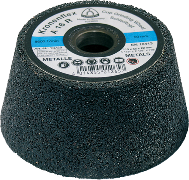 - Высокие результаты шлифования без особого труда. Покупая чашечный шлифовальный круг Kronenflex A 16 R Supra, пользователи получают высококачественное изделие для сложных задач. Чашечная шлифовальная головка демонстрирует оптимальное соотношение стирания и срока службы и обеспечивает очень хорошие результаты в течение всего срока службы. Прекрасное абразивное действие и высокая производительность шлифовки делают это изделие «номером один» для профессиональных пользователей. Однако чашечный шлифовальный круг Kronenflex A 16 R Supra подходит также для частных проектов в домашних мастерских и обеспечивает отличные результаты вне зависимости от условий.
